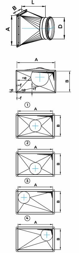 Переход с круглого на прямоугольное сечение используется в системах вентиляции и кондиционирования для соединения прямоугольных и круглых воздуховодов.